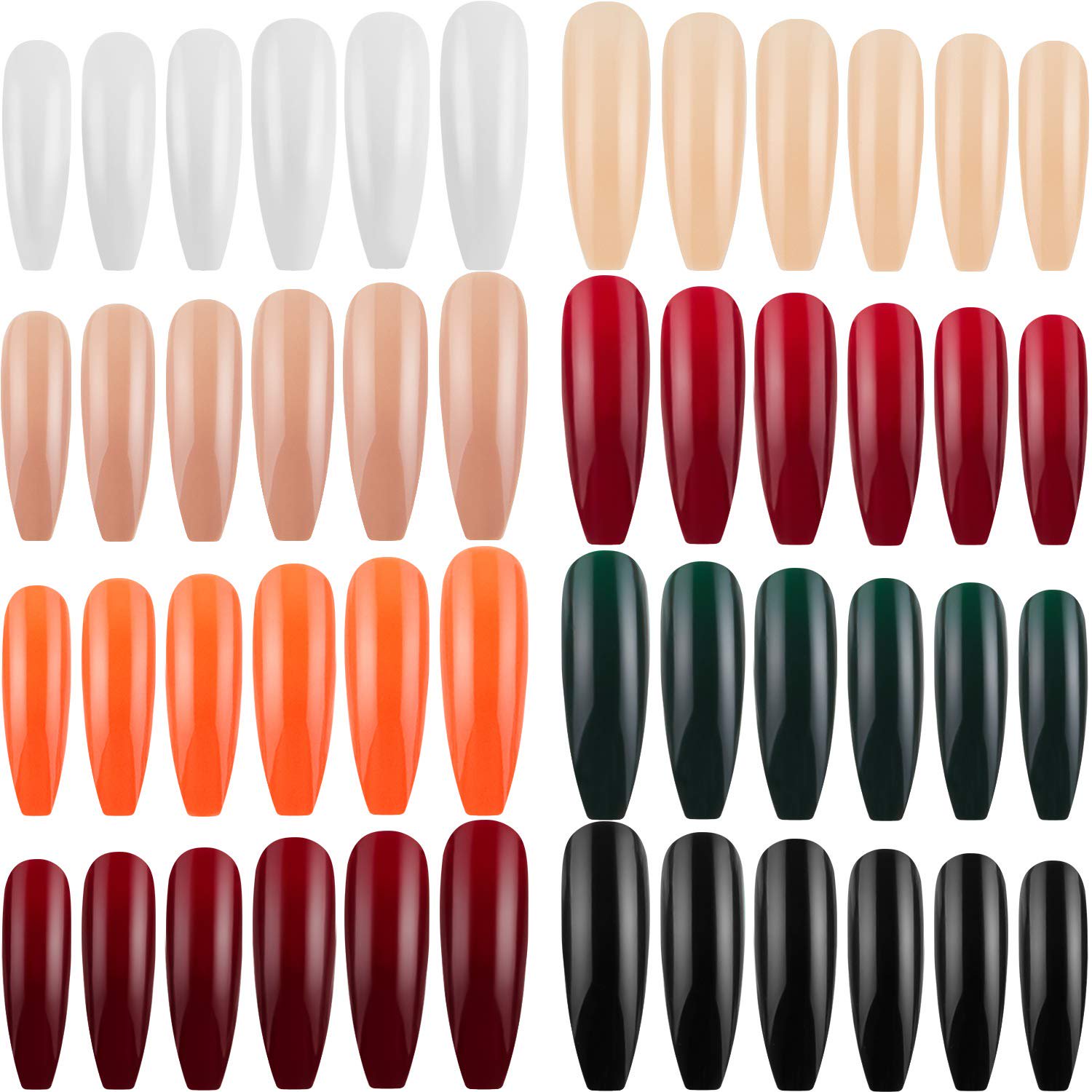 192 Pieces Extra Long Colorful False Nails Ballerina False Nails Full Cover Fake Nails Coffin Flat Press On Fake Nails Coffin Ballerina Nail For Nail Art Salon Decoration 8 Colors Classic Color